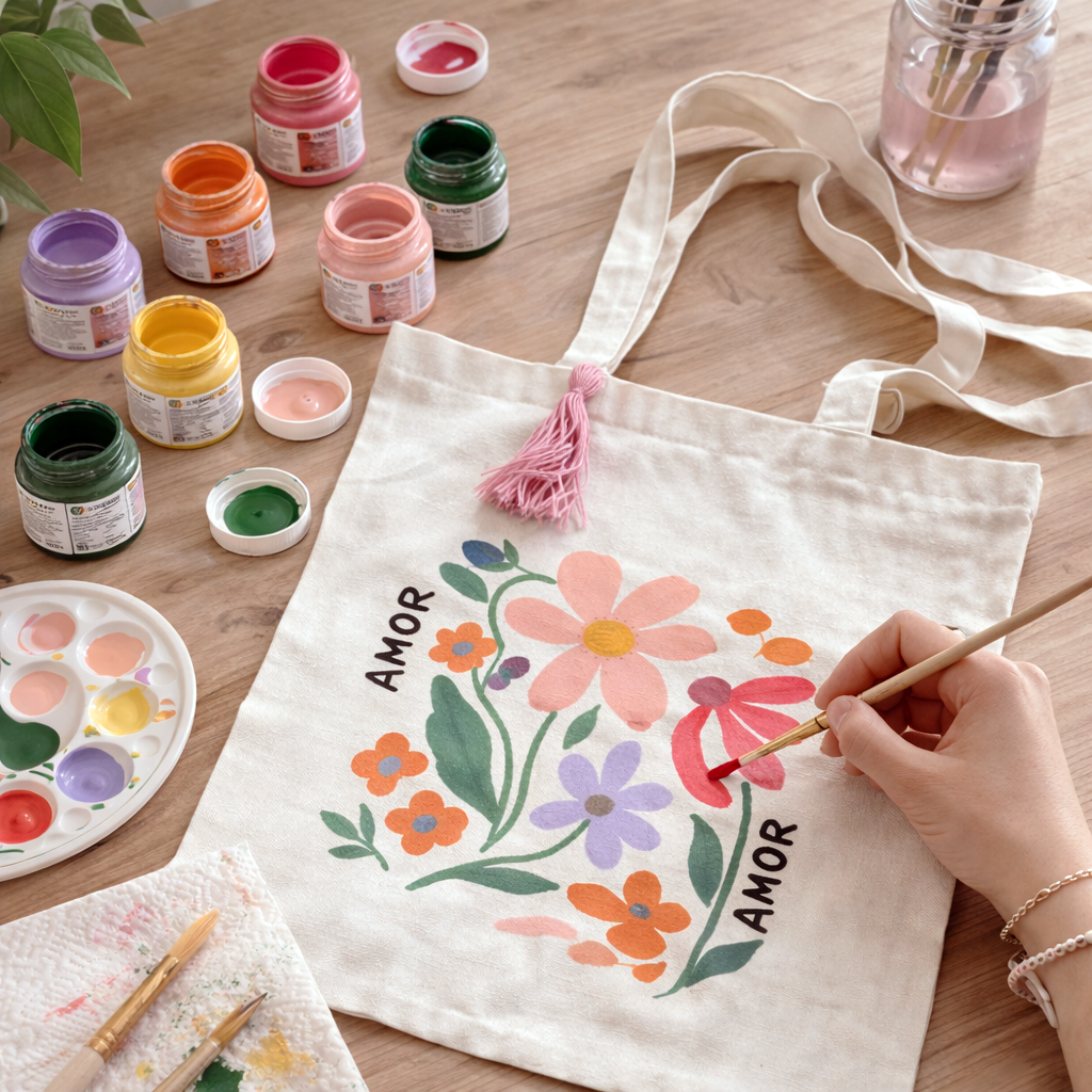 Crearás tu tote paso a paso y con ayuda de una profesional en Bellas Artes, que te guiará durante todo el proceso y te ayudará a dibujarla.